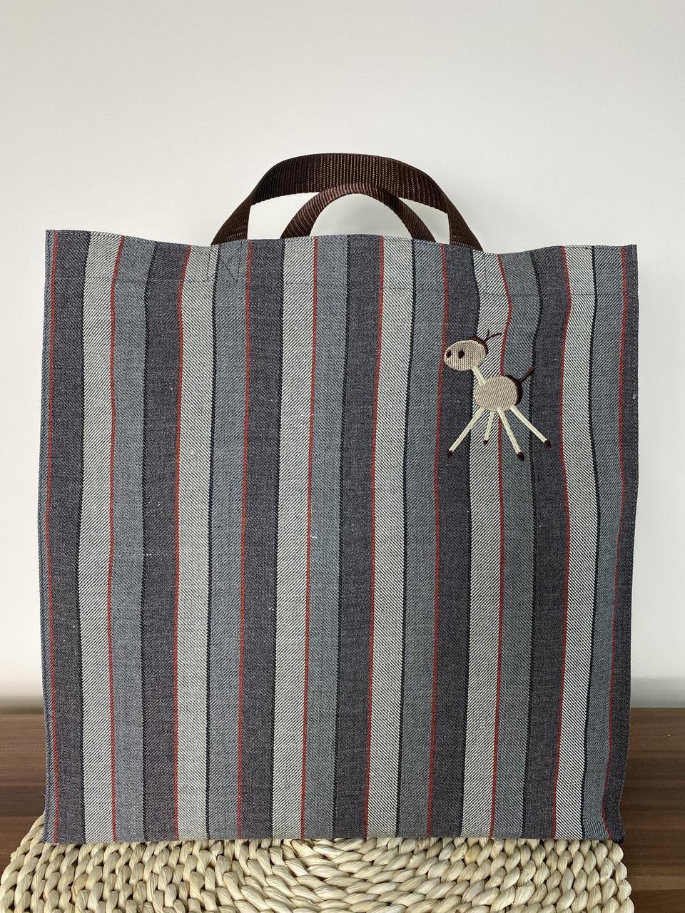 Riidest kott - Riidest vastupidav ning mahukas poekott, mõõdud: pikkus ca 43 cm, laius ca 36 cm, küljed ca 12 cm, külgedel ka helkur, sanga pikkus ca 27 cm, sobib kandmiseks käe otsas.